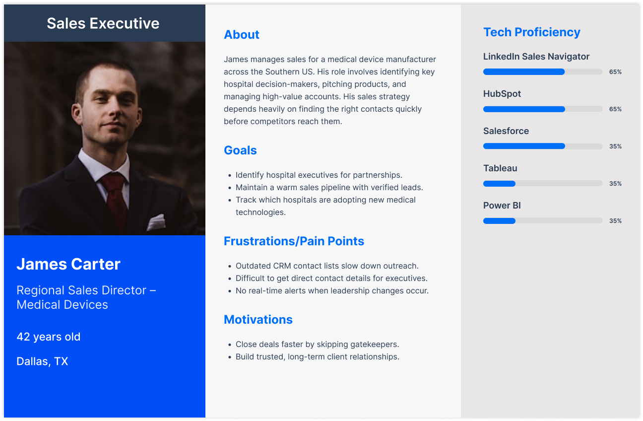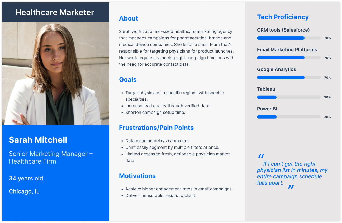 Healthcare sales teams need a fast, intuitive way to search and filter data so they can identify high-value contacts without getting lost in an overwhelming interface.