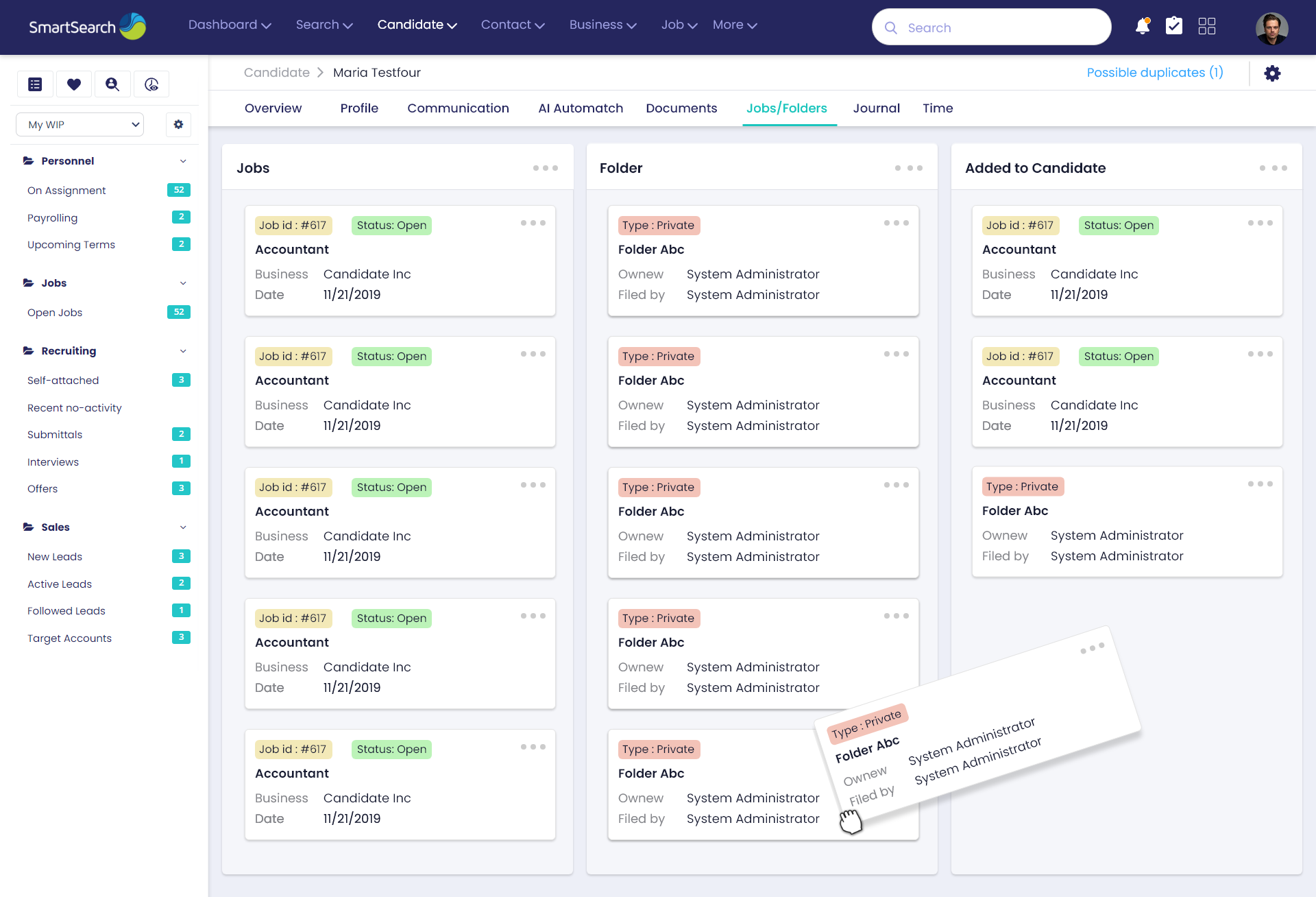 - Too many clicks to access candidate/job data